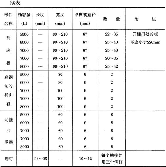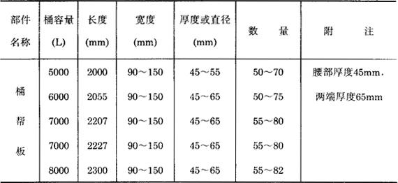 *分子为椭圆的小直径,分母为椭圆的大直径。 表3-7-5 大型木桶各部件规格