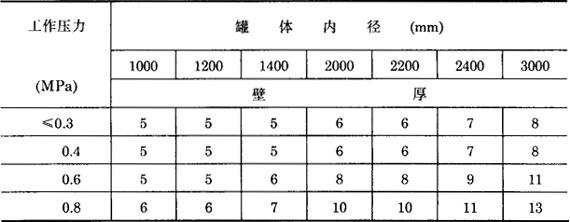 图3-7-2 水泥贮酒池 2.水泥池除垢方法 水泥池壁上污垢,可以采用刷洗和铲刮办法除之。若垢层很厚可以敲击铲除,或用喷灯烘烤,使垢层干燥脱落,或用化学方法除去。 (三)金属容器 金属容器是近代发展的一种贮酒容器。如不锈钢罐、碳钢制成内层涂料的贮酒罐等,这些统称为金属贮酒罐,在葡萄酒陈酿过程中显示出许多优点,是今后贮酒容器的发展方向。 1.普通碳钢罐 采用普通钢板(A3)制成,内涂环氧树脂涂料。这种罐目前国内已广泛使用。容量一般为50000L左右,最大的已达500000L。 (1)贮酒罐制造时常用参数 碳钢罐直径与高度比例一般为1∶1.5~2.5,大容器为1∶3~4。 罐壁厚度的计算与大罐承受压力大小、罐的直径、选用材料的许用应力有关,可参考表3-7-6数据选用。 表3-7-6 碳钢罐罐壁厚