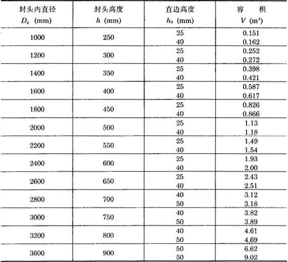 贮酒罐封头,一般为椭圆形与蝶形两种,计算公式与罐壁厚度相同,为考虑加工减薄量,应根据加工条件,一般比罐壁厚2~3mm。 (2)容积计算 贮酒罐容积就是罐身加两个封头的容积,罐身按圆柱体计算。椭圆形封头容积可按表3-7-7选用。 表3-7-7 椭圆形封头容积