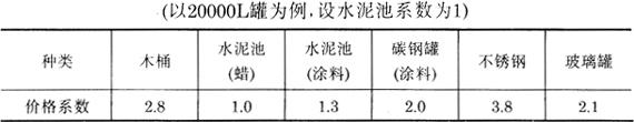 图3-7-3 不锈钢贮酒罐 表3-7-8 各种贮酒罐参考价格系数