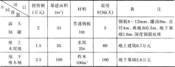 表3-7-9 不同容器投资对比情况(100m3容量)