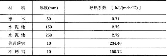 注:摘自北京东郊葡萄酒厂(1980年初)资料。 表3-7-10 各种容器材料的导热系数