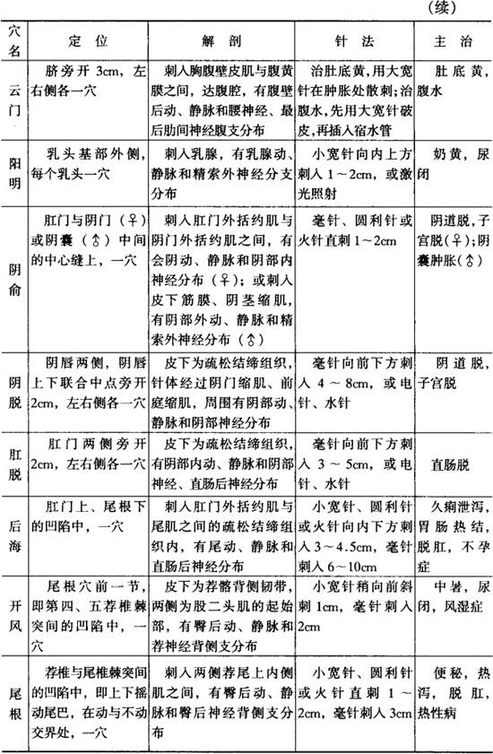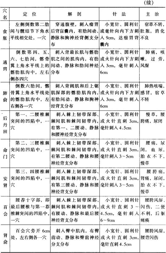 字词 躯干部穴位