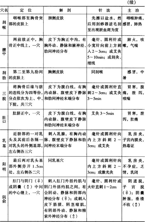 字词 躯干部穴位