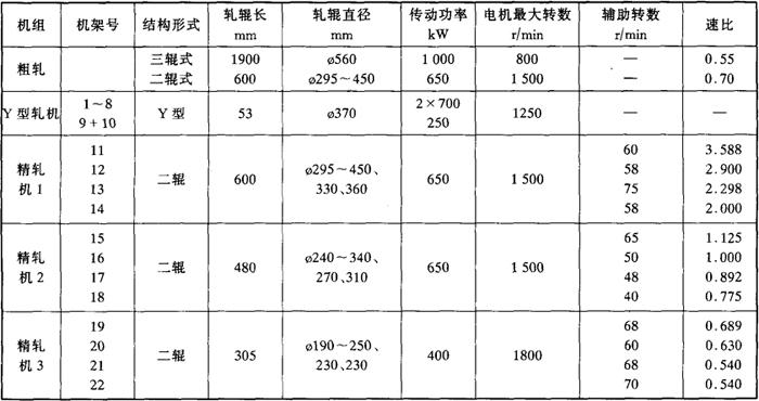| 释义 | 轧制 钢坯出炉后经高压(200kg/cm2)水除鳞,有利于表面质量和孔型寿命,钢坯首先在8架Φ450mm平立式轧机进行粗轧,采用箱形→椭圆孔型。经飞剪切头后进入由8架或10架组成的平立式轧机进行中轧,如果生产大盘卷,应设1~2架三辊考克斯轧机定径。采用方椭和圆椭孔型。轧件经飞剪切头后经过约70m长的并设有三个水冷箱的管道活套进入精轧机,使精轧开终轧温度控制在950℃和1060℃。精轧机组由8~10架45°轧机或考克斯轧机组成,成品规格为Φ5.5~12mm。采用圆→椭孔型,精轧后的线材集卷后离线热装进行热处理,以确保良好均一的冷加工性能,具有代表性的德国南威斯特法伦特殊钢公司的线材轧机性能见表3-18。 表3-18 南威斯特法伦特殊钢公司线材轧机性能