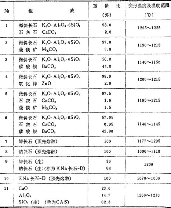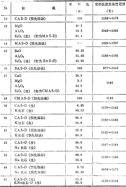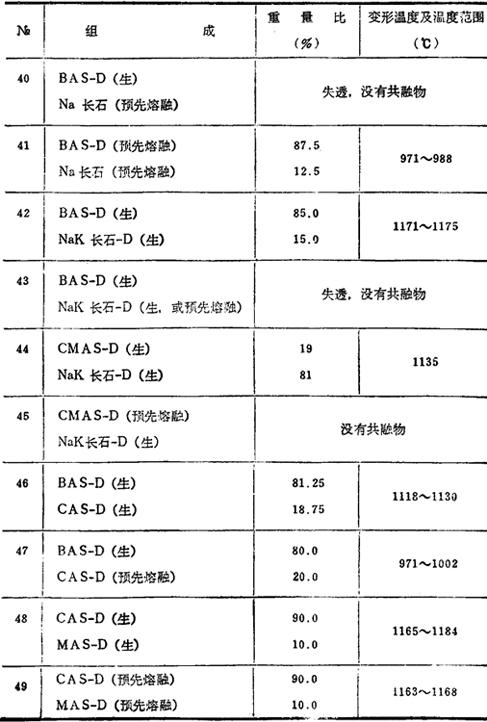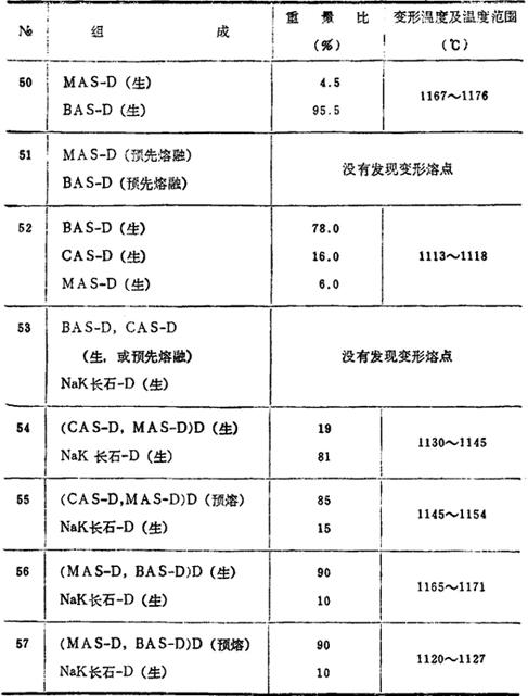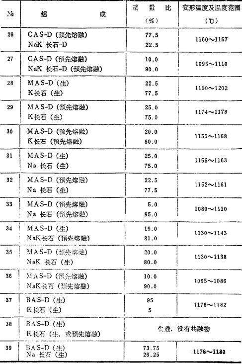 下表所示是在一定的加热条件下,三角锥的变形温度至熔倒温度。组成为共熔物。