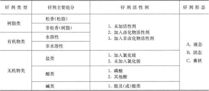 表10.2-14 软钎剂分类及代码(GB/T 15829-1995)