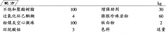 制造轻质人造大理石,树脂与填料的质量比宜为1∶2~1∶3。填料中粉煤灰与助剂也有一定的比例,配比应根据实际情况而定。配比不当,花纹仿制逼真度差,并且制品的机械性能亦不佳。为使制品增加天然感,必须加入增强助剂。通常做法是在粉煤灰中加入色料与树脂,搅匀配色,然后再将增强助剂用树脂调匀,用做花纹料。
