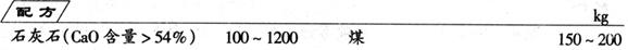 (1)煅烧 将石灰石碎成拳头大小,置于窑内。以木柴引燃硬煤,按煤:石灰石=1∶8~1∶11的比例配料,以抽气机抽气,使炉内充分燃烧,在900~1000℃,石灰石分解成生石灰(CaO)及二氧化碳。将生成的二氧化碳以1个大气压的压力通过洗气塔除尘,然后通入碳酸化池中。煅烧反应完成后,自然冷却,出灰,即可得到生石灰粗品。出灰过程连续进行。