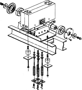 图16.3-1 典型的轿顶反绳轮结构示意 (2)用手摸触感觉轿顶反绳轮轴承的工作温度,看看是否发热。 (3)清除轴承上多余的油脂。 (4)检修速度运行电梯,仔细倾听反绳轮轴承工作时是否有异常声响;如果有异常声音,可以如图16.3-2所示,使用螺丝刀辅助判断。