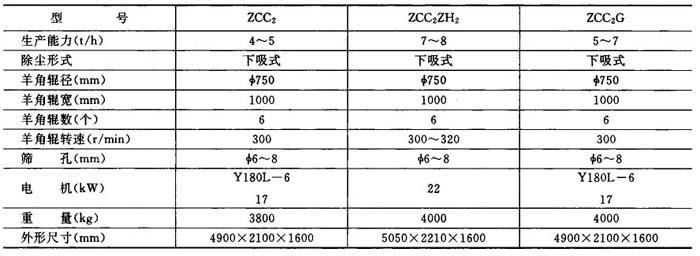 | 释义 | 辊式除尘机 辊式除尘机又称羊角除尘机或羊角筛,是我国沿用较早较普遍的一种除尘设备。 1.工作原理 草片进入辊式除尘机后,随羊角转鼓转动,草片被拨动,打散、翻滚,使草叶、尘土经上吸尘抽走,较重的泥沙、稻粒尘土等经筛板落入灰斗,利用螺旋和风机排尘除去。筛选净化后的均整草片,送去蒸煮制浆。 2.主要结构 主要由羊角辊筒、筛板、吸尘罩、灰斗、出渣螺旋、风机及传动部分所组成。 ①羊角辊筒由8~10mm厚的钢板卷焊接而成;辊面按螺旋线形式焊有羊角齿棒,中间装有通轴。 ②羊角齿棒是由热处理后的耐磨,高硬度的圆钢车制或钢板割制而成,羊角形状有圆锥棒形,也有梯形角钢状(如上底25mm,下底35mm,厚度14~16mm,梯形高100~120mm)。 羊角齿的螺旋排列,由辊面中间向两边呈30角排列和由两边向中间排列,使草片在向前拨动中形成散开→收拢→散开→收拢方式进行筛选除尘。 ③筛板在转鼓下面呈半圆形,由厚1.5~2mm钢板冲钻制成。筛孔Φ6~8mm。为防止草片堵塞筛孔,有利草片分散,入口处第一个羊角转鼓下边可用无孔板,其余各辊均配有筛板,羊角齿棒与筛板间距以10mm左右为宜。 ④羊角转鼓由链轮或三角带轮传动,各辊间应适当速差,出料辊较快以后递减,即利于提高除尘效果,又能防止草片堆塞,传动辊筒主轴应加粗。 ⑤利用风机、风筒吸尘罩等将轻质草叶灰土吸走,排出进行处理,对较重的尘土、料末、稻粒等由螺旋输送机运出处理。 3.主要技术特征 表6-2-16 辊式除尘机主要技术特征