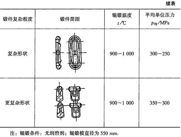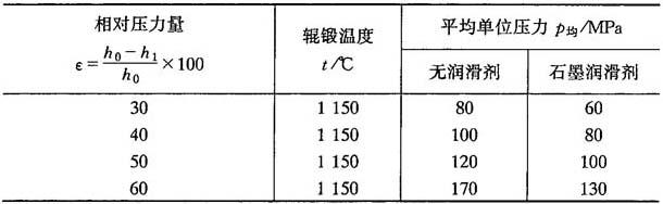 表8-19 制坯辊锻的平均单位面积压力p均