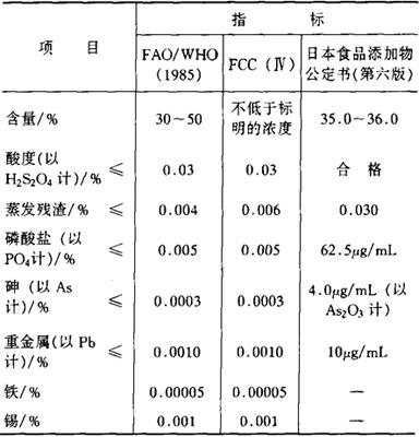 鉴别方法 取10%本品溶液10mL,加10%硫酸5mL和0.1moL高锰酸钾溶液1mL,应有气泡发生,高锰酸钾颜色退去。 毒理学依据 LD50 大鼠皮下注射700mg/kg(bw)。 过氧化氢,不论是纯品或30%水溶液,均具苛性效应,若涂于皮肤上会造成灼伤。一般不存在毒性问题。如果添加量大,则出现各种问题。大鼠每日经口服入0.6mg、6.0mg、60mg,经21d观察,6.0mg组的体重减轻,60mg组的一部分发生腹部膨胀而死亡。 1980年,日本报道本品有致癌性,厚生省修改其使用标准,规定在食品出厂前,要将过氧化氢除去或分解掉,不许在食品中残留。 使用 防腐剂、漂白剂、杀菌消毒剂。 1.使用注意事项 (1)本品有强腐蚀性,皮肤接触可产生水肿。 (2)本品具有致癌性,在食品成品中不得有残留。 (3)用作牛奶保鲜剂,允许在内蒙古、黑龙江使用。如果扩大使用地区,须由省级卫生部门报卫生部审核批准,并按农业部有关实施规范执行。 2.使用范围及使用量 (1)我国《食品添加剂使用卫生标准》(GB 2760-1996)规定:可用于生牛乳保鲜和袋装豆腐干,每升生牛乳中最大使用量为0.3%过氧化氢2.0mL及硫氰酸钠15.0mg/L。用于袋装豆腐干,最大使用量为0.86g/L,不得有残留。 (2)我国台湾省《食品添加物使用范围及用量标准》(1986)规定:可用于鱼糜制品、面粉及面粉制品,在食品中不得有残留。 (3)日本食品卫生法(1985)规定:在食品成品中过氧化氢必须分解除去,并曾将过氧化氢用于煮熟面条、鱼糕等食品的杀菌或漂白。鱼糕一般用1%~3%的过氧化氢溶液浸渍,然后充分水洗,以防过氧化氢残留;用于麦片时,其用量为每公斤使用10~20g 3%~5%过氧化氢溶液。 |