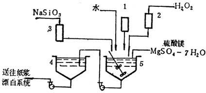 图5-12-7 间歇法制备过氧化物漂液流程 1-NaOH槽 2-H2O2计量槽 3-计量槽 4-H2O2贮槽 5-H2O2溶液混合槽 为防止过氧化物漂液分解,一般贮量供2~3h,最多贮量不超一天使用量。 3.过氧化氢漂剂的使用 双氧水一般用于机械木浆的漂白,在碱法布,棉浆也有应用,用于漂白布,棉浆时,在第二级漂白碱化过程中加入2~5%,白度可提高5~8度。 碱法草浆的漂白,用量2~5%,pH在9以上,常温,用作第二段或第三段漂白,白度可提高5度左右。 在使用时,先检查pH值,然后加入漂浆机中,漂白1h后,再进行下一段处理。 双氧水作漂白剂的优点是减少无机物和盐类的排放,减少污染,但一次提高的白度不多,成本较高。 |