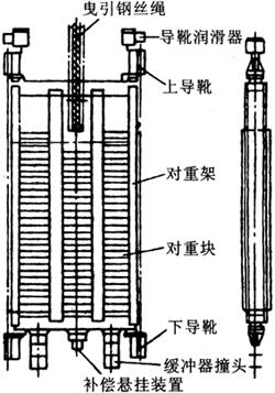 无论是对重还是轿厢,在四个角上都安装有导向的导靴,用来保证轿厢和对重在运行时沿着固定的轨道运行。