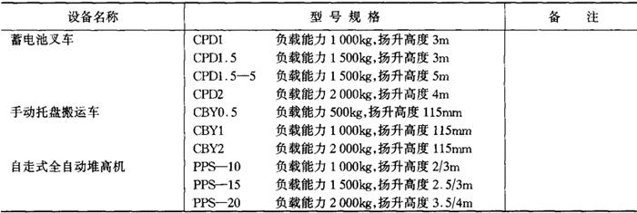 | 释义 | 运输 饮料厂运输量比较大,尤其是在高峰销售季节。 饮料厂的厂外运输以公路为主、铁路为辅,大的企业采用集装箱式运输。 厂内运输以蓄电池叉车为主,总体布置时大企业往往把成品库、包装材料库与灌装车间紧密组合,因此运输比较单一。 厂内常用运输设备见表6-5-5。 表6-5-5 常用运输设备