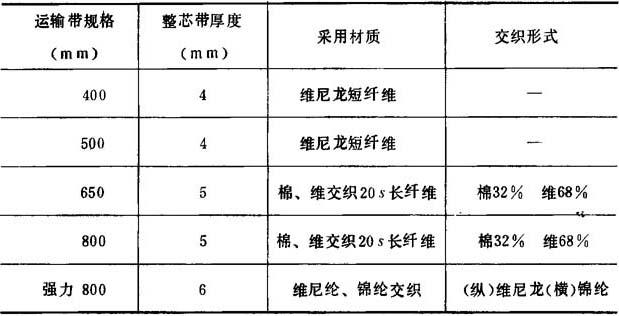 (三)整芯带规格 目前生产的运输带有五种规格,一般以带的宽度来划分,参见表4-7-19 表4-7-19 整芯带规格
