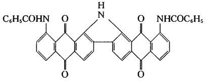 【释文】: 制法 由1-氨基-5-苯甲酰氨基蒽醌与1-氯-5-苯甲酰氨基蒽醌缩合,再经闭环,氧化而得。 性质 橙红色粉末。分子量665.66。在酸性溶液中呈暗黄色,在浓硫酸中呈绿光黄色。稀释后呈橙色。在碱性保险粉还原液中呈绿色。微溶于四氢化萘、硝基苯和二甲苯,不溶于水、醇。 用途 本品为还原染料,主要用于棉布印染,可作为聚乙烯、聚丙烯的着色剂。 国内生产厂 上海染化十厂 天津染化八厂 国外生产厂