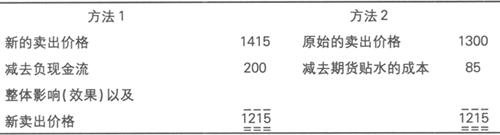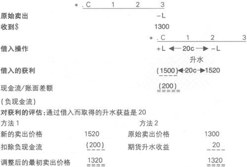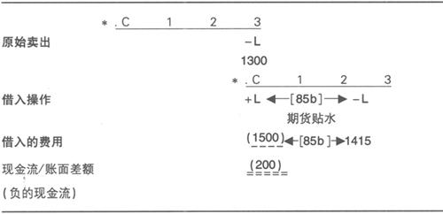 对例子的评述 整体来看,借入操作的成本使实际上原始的卖出价格降低了85,如下所示: 评估: