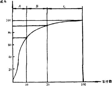 | 释义 | 选择价值工程对象的方法 在遵循上述原则选择对象的基础上,还可运用一些方法来选择价值工程的对象。主要介绍成本比重法和百分比法。 1.成本比重法 成本比重法又称A、B、C分类法,是根据局部成本在总成本中所占比重大小来选择对象的方法。其基础是意大利经济学家巴列托(Pareto)的不均匀分布理论。如图5.2.2-1所示,一般产品中常常存在如下规律即数量只占总数10%~20%的零件,花费占总成本的40%-80%。