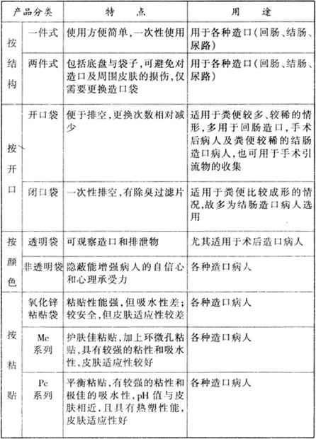造口护理用品分类、特点与用途