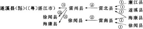 ①1912年称遂溪县、海康县、徐闻县;1959年撤销海康、遂溪、徐闻、廉江四县,海康县南渡河以南与徐闻县合并为雷南县,海康县南渡河以北与遂溪县、廉江县合并为雷北县。②1960年雷北、雷南县分别更名为雷州县、徐闻县。③1961年撤销雷州县,恢复遂溪县、徐闻县、海康县。