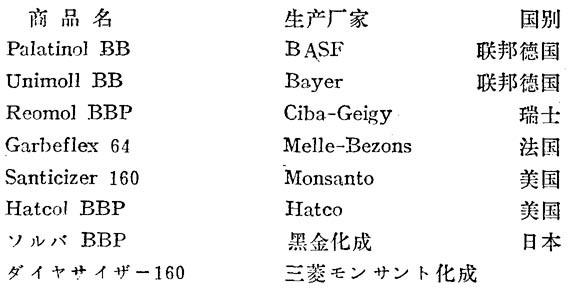 用途 可作为聚氯乙烯、氯乙烯共聚物、纤维素树脂、天然橡胶和合成橡胶的增塑剂。高温挥发性小,耐热性、耐光性和耐寒性好。特别是在聚氯乙烯中可显着改善其加工性。本品还具有优良的电绝缘性、耐水性和耐油抽出性,动植物油对它的抽出量只有DOP的1/5~1/10。由本品增塑制得的制品抗污染,耐磨耗。本品多与其它增塑剂配合用于地板砖、瓦楞板等高填充塑料制品。作为辅助增塑剂本品与DOP等增塑剂并用于薄膜、人造革(本品能够溶解有机颜料),可赋予制品优良的透明性和表面光滑性。本品还可用于后发泡的压延配方,降低加工温度,避免发泡剂过早分解。本品用于乙基纤维素可制得透明坚韧的板材、薄膜、模制品和热熔粘合剂。以40%(重量)左右的量用于醋酸丁酸纤维素,可制得透明的革状薄片,用量较小时,可以配成适于挤塑和模塑的硬质料。本品用于硝酸纤维素漆中可以获得透明柔韧的漆膜,但耐光性不及使用DBP的漆膜。 毒性 邻苯二甲酸丁·苄酯的毒性低,毒性系数T=500,美国工业生物实验室以大白鼠(饲料中含本品2%)和狗(饲料中含本品5%)为对象,对本品进行过90天的经口亚急性毒性实验,来见实验动物有任何毒理学症状,本品在动物脏器内几乎全部水解为正丁醇和苯甲醇,这两种醇缓慢氧化排出体外。法国工业卫生和医学研究所用大白鼠对本品进行过长期毒性实验(剂量为5毫克/天/公斤体重,连续两年),亦未发现任何毒性和致癌性。 美国联邦法规(1964年)允许本品用于接触食品的材料,但应满足两个条件:①含量不超过1%;②氯仿抽出量不超过0.5毫克/英寸2。此外美国食品药物管理局对本品在食品包装材料中的应用有具体规定(参见FDA121.2511,121.2526,121.2571)。法国规定本品在纯度达99%时,可用于接触食品的制品。英国规定本品在无毒塑料中的用量不得超过33%。日本、联邦德国、荷兰均允许本品用于食品包装材料中。 国内生产厂 天津溶剂厂 江苏无锡县有机化工厂 国外商品名