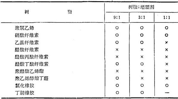 表1-6 邻苯二甲酸二仲辛酯与树脂的相容性