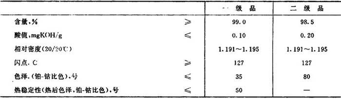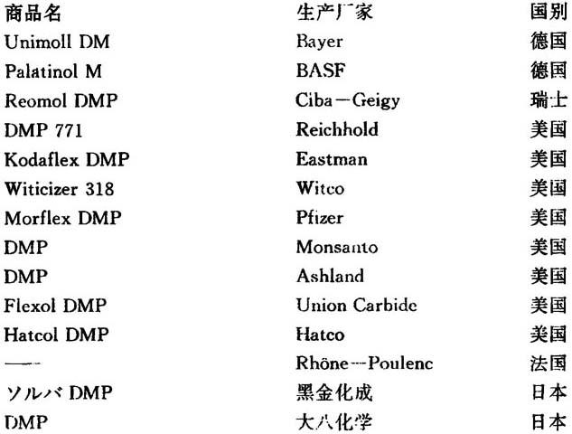 【释文】: 制法 由邻苯二甲酸酐和甲醇常压酯化而得。 性质 无色透明油状液体。微具芳香味。分子量194。色泽(APHA)<30。酸度(以邻苯二甲酸计)<0.01%。酯含量98~99%。相对密度1.188~1.192(25℃)。粘度0.0114Pa·s(25℃)、0.022Pa·s(20℃)。凝固点0℃,沸点280~285℃(0.1MPa),146℃(1333.2Pa),闪点(开杯法)149~157℃,着火点154℃。蒸气压1.33Pa(25℃)。膨胀系数0.00042/℃。折光率1.5123~1.5142(25℃)。溶于丙酮、甲乙酮、环己酮、醋酸乙酯、乙醚、甲醇、正丁醇、四氯化碳、甲苯等有机溶剂,不溶于矿物油,在水中的溶解度0.45%(25℃),水在本品中的溶解度1.8%(25℃)。沸水中煮沸96h的水解量0.1067%。本品具有很强的溶剂化能力,与大多数树脂有良好的相容性(见表1-1)。 表1-1 邻苯二甲酸二甲醋与树脂的相容性