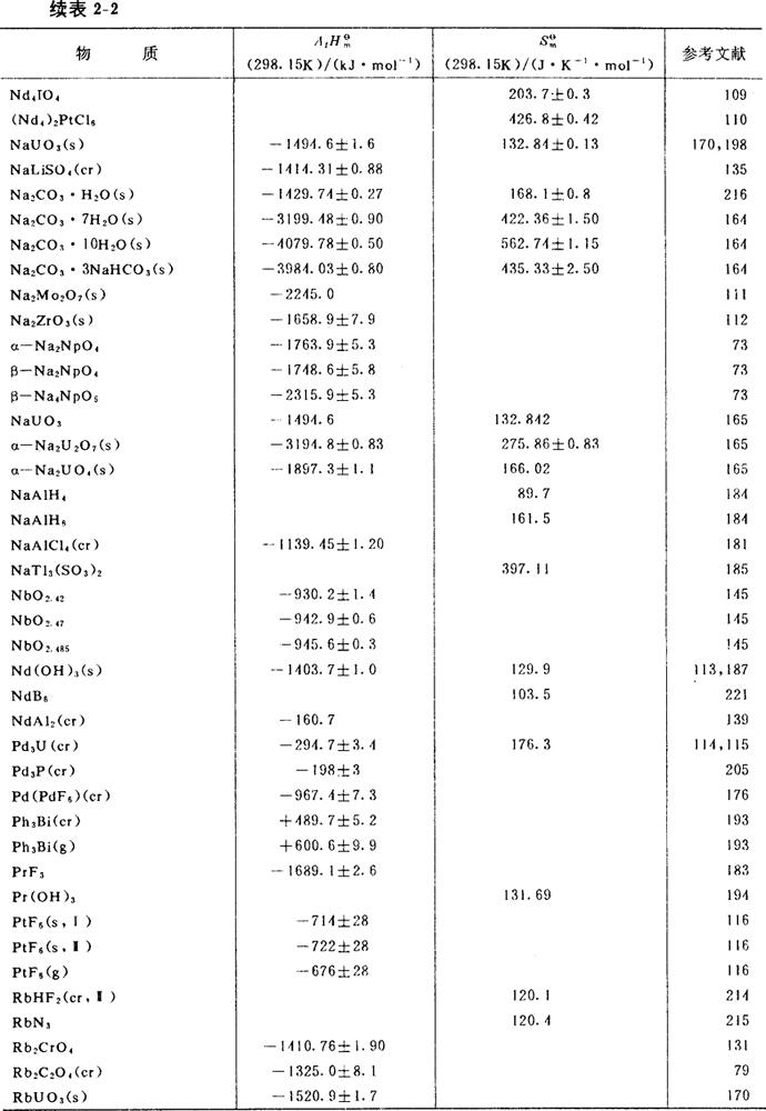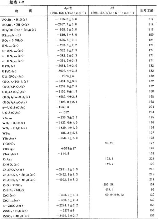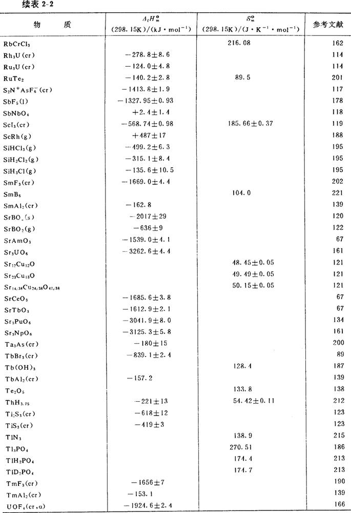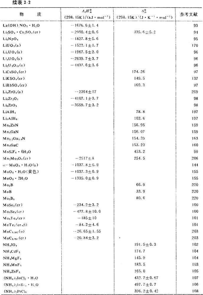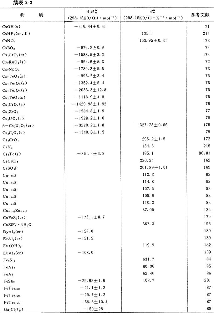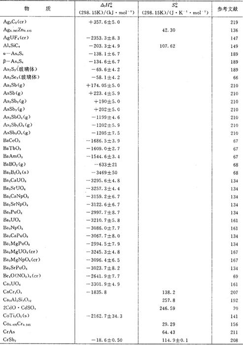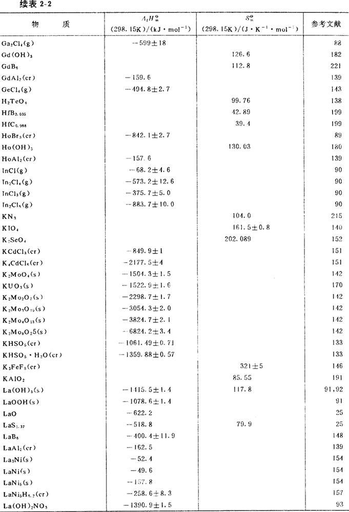 部分物质的标准生成焓及标准熵