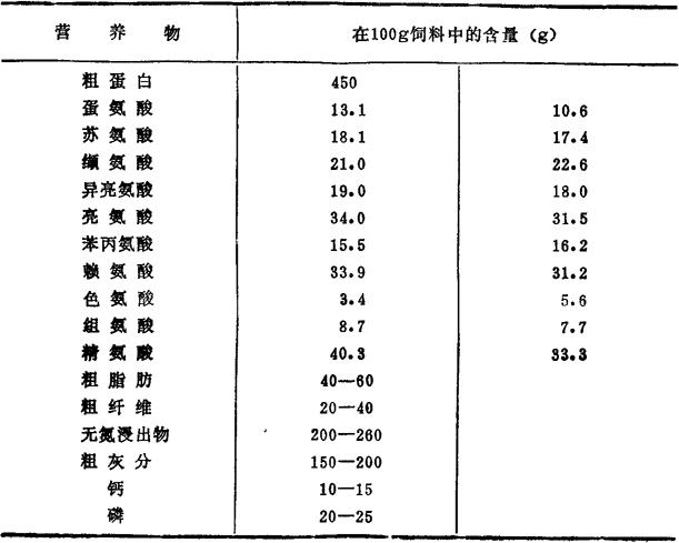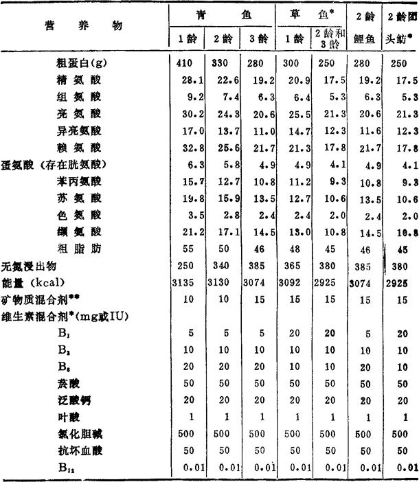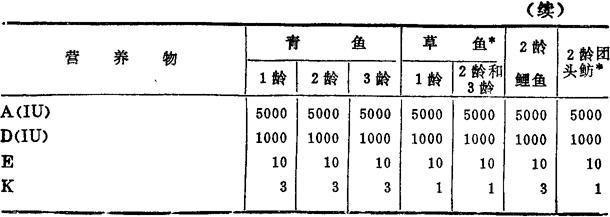 * 在添喂草类的条件下,可以省略维生素添加剂; * * 指添加量,其中生物素和肌醇是否需要及添加量尚未确定。