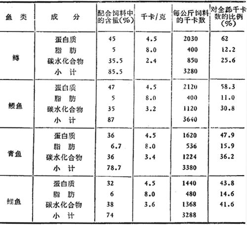 | 释义 | 配合饲料营养价值评定方法 评定饲料营养价值,一方面是要测定饲料中的营养物质含量以及所含的能量,另一方面要了解这些营养物质与能量在鱼体内参加代谢转化过程及其结果。这样才可以较全面较完善地评定饲料的营养价值。评定的方法有: ①测定饲料中各种营养物质的含量,这是评定饲料营养价值的基本方法。 ②应用测热器可以测出不同饲料的总热能,这是测定饲料中所含能量的基本数据。 ③通过鱼类对各种饵料的消化吸收率的测定,可测出饲料中各种营养物质的消化率和饲料的消化能。 ④进行各种代谢试验,如物质代谢和能量代谢。 ⑤进行各种配合饲料对不同鱼类的饲养对比试验,可以测得各种配合饲料的饵料系数、饲料效率。 饲料的营养价值,是用来评定饲料的品质,制定饲料调制效果的指标。饲料的一般化学成分虽然也能说明饲料的营养价值,但是并不完全确切。因为饲料中化学成分的含量,并不代表鱼类对这些化学成分的可消化利用的数量,因此,饲料营养价值评定的单位,有以下几个方面。 (1)各种营养物质的能量 动物利用所食饲料中的营养素燃烧所产生的热作为能量。用弹式热量器可以测定出各种营养素所含的全部热量。测定时,最终使碳形成二氧化碳,氢形成水,氮原子形成氮分子,硫形成二氧化硫。饲料中三大类有机物质,如碳水化合物、脂肪、蛋白质都能在鱼体内氧化而产生热能。它们以碳与氢的总含量越多,则氧化时产生能量也越多。每克纯营养物质的含热量(千卡/克干物)为:蛋白质5.65,奶油9.223,植物油9.520,动物脂肪9.461,淀粉4.205,纤维素4.18,糊精4.115,葡萄糖3.752,蔗糖3.972。这些数值包括了全部的潜在热量。但这些热量决不是都能够被鱼类所利用的。例如,鱼类对各种营养素有不同的消化率,在尿中所排泄的氨(NH3)及在粪中排出的未消化营养物质中,还有相当多的能量。因此,在营养学方面,重要的是要计算出生理上可能利用的热量来。 最近据Smith报道,虹鳟鱼尿中,80%的含氮排泄物是氨,用直接弹式量热器测定法测定尿的热量,结果证明,虹鳟对食料中蛋白质的利用能量比人还高,每克相当于4.5千卡。这个值对鱼来说是合适的。鳟鱼对脂肪的利用能是8.0千卡/克,对碳水化合物的利用能是1.6千卡/克。 鱼类所需要的热能,统一的衡量单位叫“卡”,1卡相当于1毫升水,温度升高1℃时所需热量。“千卡”(即大卡)则相当于1升水,温度升高1℃所需的热能量(是卡的1000倍)。“兆卡”为千卡的1000倍,即1吨水温度上升1度所需的热能量,在美国又称“热姆”。 近年来国际营养学协会及国际生理学协会认为衡量能的单位应以焦耳(J)表示较为确切,故已采纳焦耳作为营养代谢及生理研究中的能量单位。卡与焦耳的等值关系如下: 1卡=4.184焦耳 1千卡=4.184千焦耳。 各种鱼能够利用的热量差别很大(表3-73)。特别是虹鳟鱼,62%的能量来源是靠蛋白质,可以推想鲤鱼利用蛋白质效率相对较高。所以在配制饲料时,评价营养价值,还要考虑到饲料中可利用的能量。 表3-73 配合饲料中各种营养素的利用能