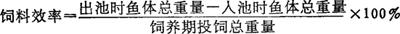 公式中的代谢氮是指鱼类不吃任何含氮饲料的情况下,由排粪便中测出的氮量。内源氮是指鱼类不吃任何含氮饲料时尿中排出的氮量。 一般地说,凡蛋白质生物学价值较高的饲料,它所含各种必需氨基酸较为完备,因而利用率较高,通常说它的蛋白质品质较高。 (3)饲料系数和饲料效率 投饵量和量的增重量之比,称为饲料的转换率或饵料系数。一般说来可以表明某种饲料的质量高低。凡是营养成分含量高的,又容易为鱼类消化吸收的饲料,必然是饲料系数低,饲料效率高;反之,则相反。当然饲料系数的大小和饲料效率的高低,不仅取决于饲料的本身,而且还要受到饲养方法及环境条件等诸因素的影响。 ①饲料系数。简单地说就是几斤饲料长1斤鱼。说得准确些即:饲养期间所投饲的总量与鱼在此期间的增重量的比。用下式表示: