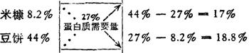 ②计算:见表3-57 表3-57 各原料所占配的百分比及粗蛋白质的百分比