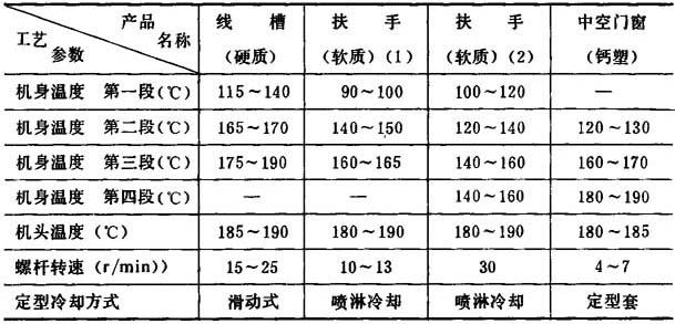 (二)工艺条件 异型制品挤出成型工艺条件可见表4-6-4所示。 表4-6-4 异型制品工艺操作条件