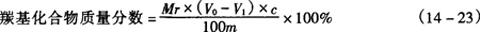 式中 Mr——有关香料产品标准中所规定的醛或酮的相对分子质量 c,m,V0,V1——同式(14-22) 平行试验结果允许差: 羰值1.0;羰基化合物含量0.5%。 4.注意事项 4.1 对酸值高的试样应单独测定酸值。 4.2 试验所用的羟胺溶液要新鲜配制。 4.3 醛和酮的反应时间(羟胺法)在各有关标准中所规定。 二、盐酸羟胺法 1.定义和原理 试样通过与盐酸羟胺反应将羰基化合物转化成肟。用氢氧化钠标准溶液滴定反应中释放出的盐酸。 本法适用于较易转化为肟化合物的醛类、酮类以及甲基酮类的羰值或羰基化合物的测定。 2.测定方法 2.1 仪器和试剂。 2.1.1 锥形瓶:250mL,具磨口瓶塞。 2.1.2 量筒:50mL。 2.1.3 滴定管:50mL,有0.1mL的分刻度。 2.1.4 分析天平。 2.1.5 pH计:有0.1pH的分刻度。 2.1.6 磁力搅拌器。 2.1.7 精制乙醇(95%)及中性精制乙醇。 2.1.8 0.5mol/L盐酸羟胺溶液。 2.1.9 0.1mol/L及0.5mol/LNaOH标准溶液。 2.1.10 溴酚蓝指示液。 2.2 操作程序 称取一定量的试样(精确至0.0002g,)置于250mL锥形瓶中,加入5mL中性乙醇和2滴酚酞指示液,滴加0.1mol/LNaOH溶液以中和游离酸。用量筒加入50mL0.5mol/L盐酸羟胺溶液,摇匀,在室温静置1h(或按有关产品标准中规定的时间静置)。用0.5mol/LNaOH标准溶液滴定至与试剂盐酸羟胺溶液相同的黄绿色,或滴定至和试剂盐酸羟胺溶液同样的pH。记录所用的氢氧化钠标准溶液的体积V。 3.分析结果的表述 3.1 精油的羰值。
