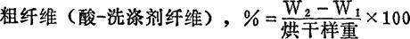 | 释义 | 酸-洗涤剂法 (一)适用范围 本法适用于谷物及其加工品、饲料、牧草、果蔬等植物茎秆、叶、果实以及测定粗脂肪后的任何样品中的粗纤维测定。本法是采用一种表面活性剂——十六烷基三甲基溴化铵(简称CTAB),在1.00N硫酸溶液中能有效地使植物中的蛋白质、多糖、核酸等成分水解、湿润、乳化、分散,而纤维素及木质素则很少变化。因此经过过滤,分离即可由残渣重计算粗纤维(酸-洗涤剂纤维)%。 (二)试剂及主要仪器 1.酸-洗涤剂溶液 20g十六烷基三甲基溴化铵(三级)加到已标定好的1L1.00N硫酸溶液中,摇动,使之溶解。 2.回流装置 见图26-6所示装置。