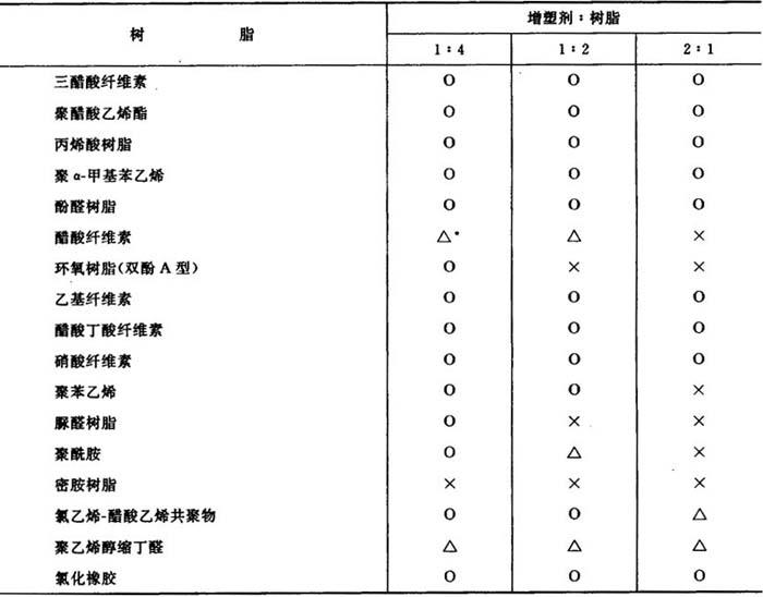 表1-43 醋酸异丁酸蔗糖酯与树脂的相容性