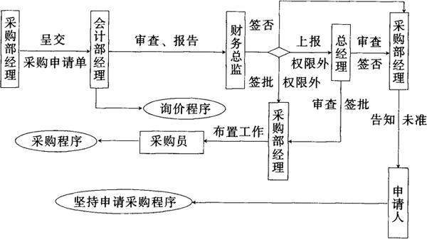(2)批准,在财务总监权限以内的,财务总监批准后将申请单送达采购部经理实施采购。