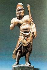 即执金刚杵(杵为古印度兵器)守护佛法的两天神(俗称“哼哈二将”)。常安置于寺院山门左右,左称密执金刚,右称那罗延金刚。造像多裸露全身,缠衣裳于腰部,怒目作勇猛之相。寺院四天王像通常亦称“四大金刚”。