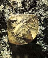 化学成分为碳。等轴晶系。常呈八面体、菱形十二面体晶形。无色透明或带有蓝、黄、褐、黑等色调,金刚光泽,折射率高,硬度10,密度3.51克/厘米3,在紫外线下现淡青蓝色荧光。