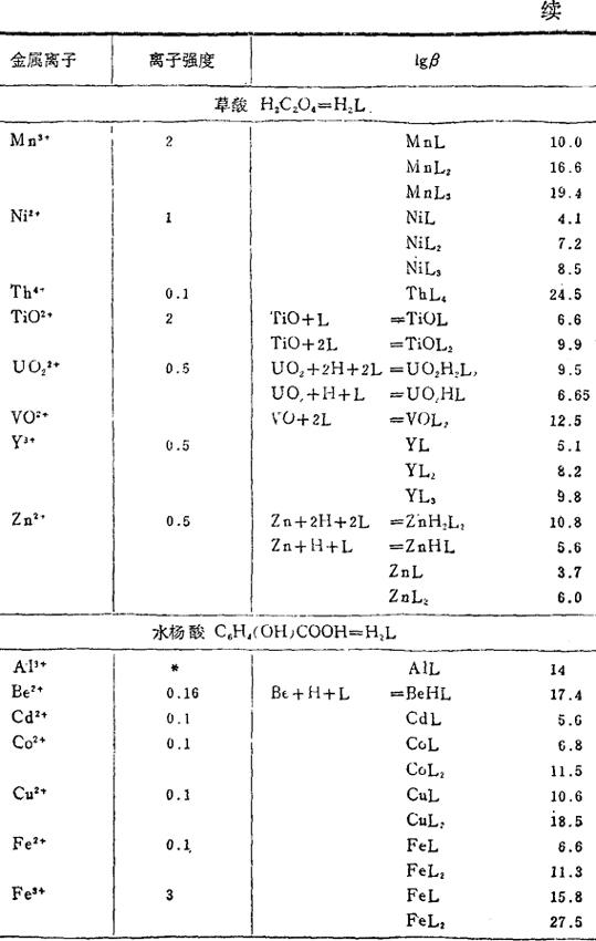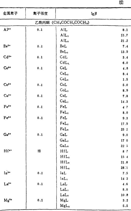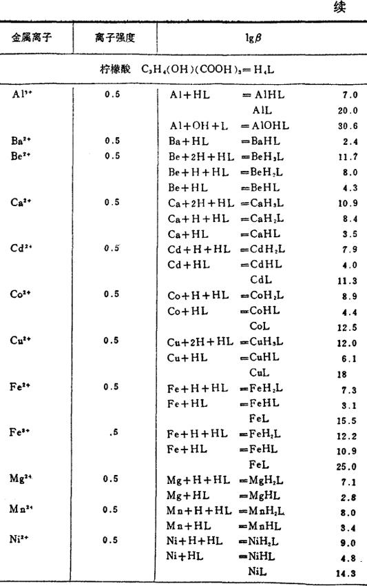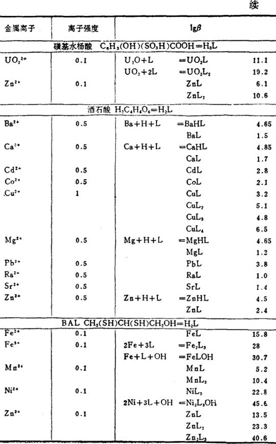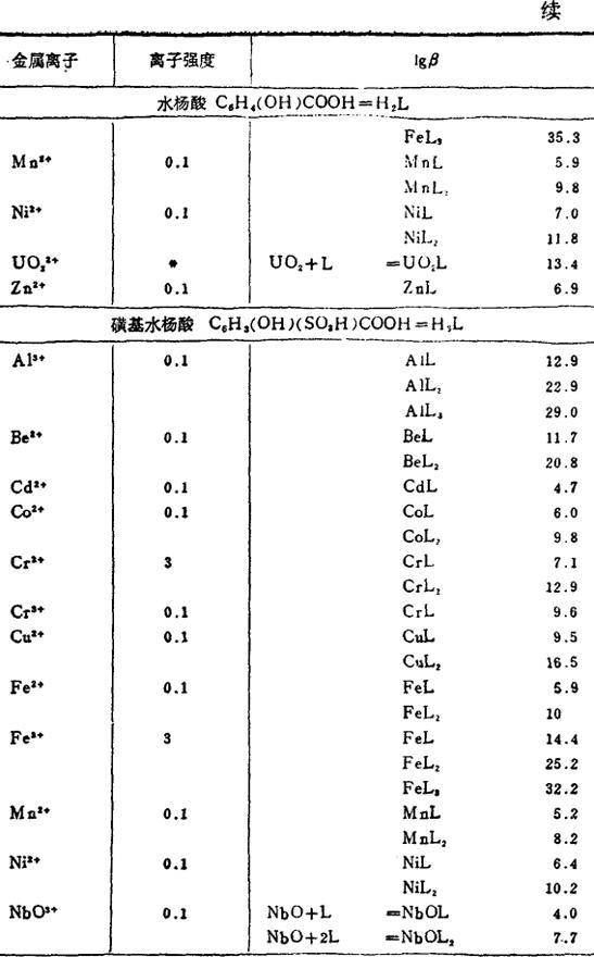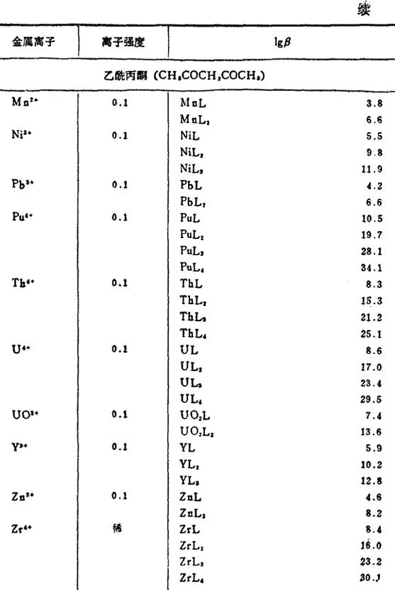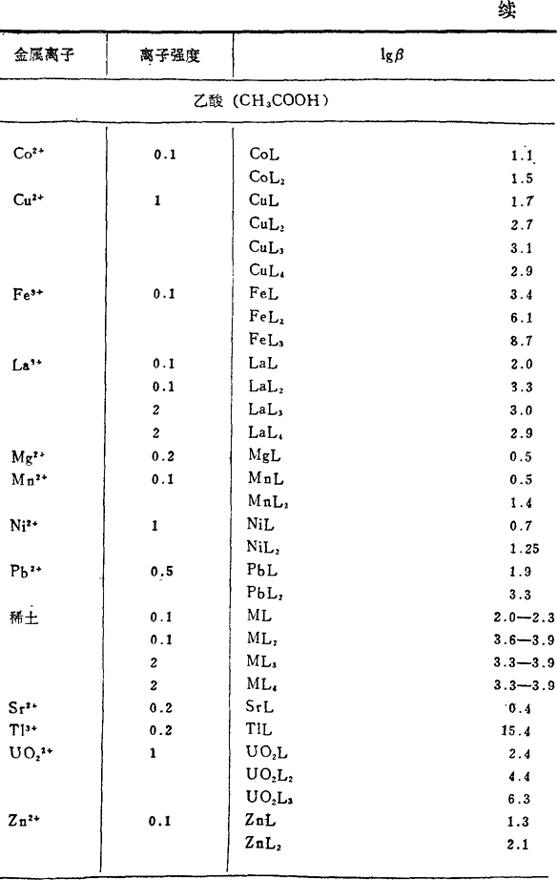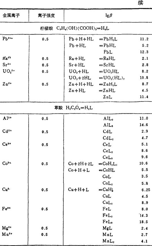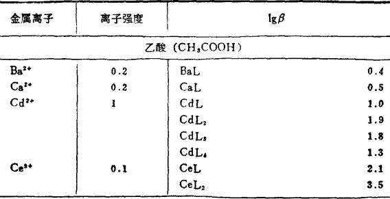 金属和有机络合剂络合物的稳定常数