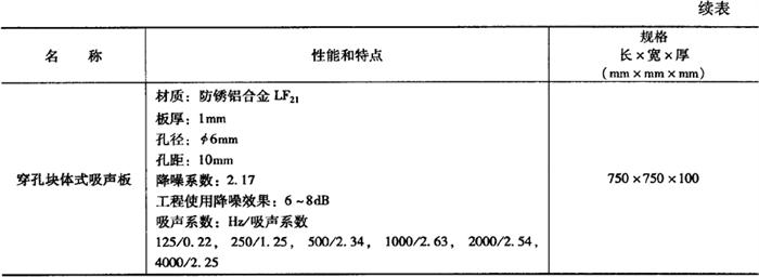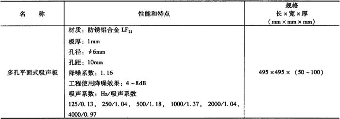 金属微穿孔吸声板可以分为平面式吸声板和穿孔块体式吸声板两种,其规格及性能如表21-22所示。