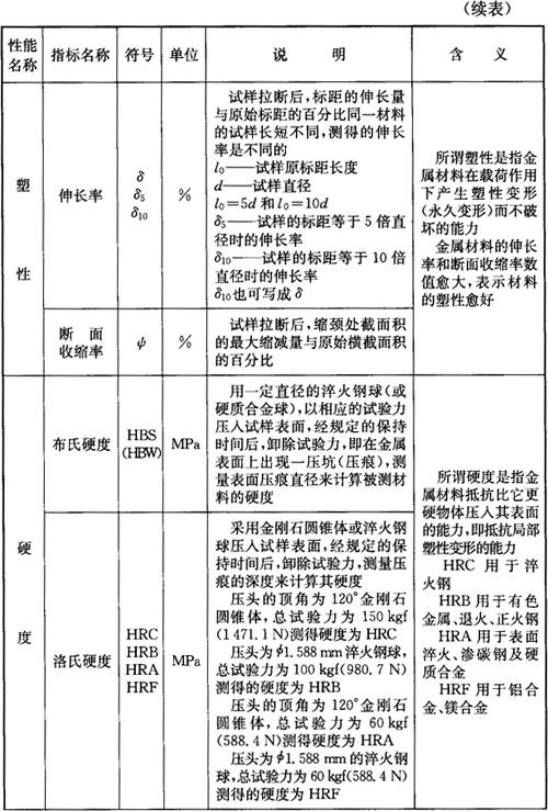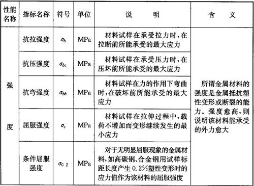 金属材料的常用力学性能见表2-1。