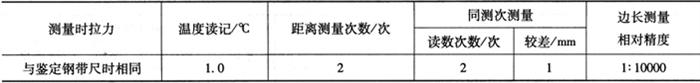 注:1.测量限差均相对于安装轴线和高程基点而言。 2.当工程要求高于本表时应遵守有关技术文件规定 4)应根据安装测量精度要求选择相应的测量仪器设备及配套器具。 2.安装专用控制网、安装轴线点及高程基点的测设 1)大坝、厂房、船闸、机组和各种泄水建筑物的金属结构与机电设备安装的安装专用控制网或安装轴线点及高程基点均应由等级控制点进行测设,相对于邻近等级控制点的点位(平面和高程)限差为±10mm。 2)安装专用控制网或安装轴线应随着安装部位逐渐形成及时分层布设,测设之前应对起算点的稳定性进行检测,并根据安装测量的精度要求进行精度估算,确定布设方案。 3)在安装项目较多且各安装结构单元之间相对精度要求高的部位,应布设安装专用控制网。对其他相对独立的结构单元宜布设安装轴线。 4)安装专用控制网内及安装轴线点间相对点位限差应不超过±2mm。高程基点间的高差测量限差应不超过±2mm。 5)对于每一个独立的安装单元,安装轴线点不得少于3点,高程基点不得少于2点。 6)独立安装单元的距离测量或竖直传高时用的钢带尺必须是经过检定的。对于超过钢尺整尺段长度而又无法分段丈量的水平距离,可以采取高精度测距仪或全站仪用“差值法”进行测量。 3.安装点的放样 1)安装点线的测放必须以安装轴线和高程基点为基准,组成相对严密的局部控制系统。 2)方向线测设时后视距离必须大于前视距离,宜用具有细、直、尖特点的测针等工具作为照准目标。经纬仪或全站仪投点应采用正倒镜两次定点取平均值。 3)测量距离30m以内宜采用钢带尺量距,测量时每次读数估读至0.1mm。钢带尺量距值必须进行倾斜、尺长、温度、拉力及悬链改正。距离测量相关技术要求见表13-6。不便用钢带尺量距或量距超过30m时,宜采用测距仪或全站仪“差值法”施测,其仪器的测距标称精度不得低于±(3m+2mm/km)。 表13-6 钢尺距离测量的技术要求