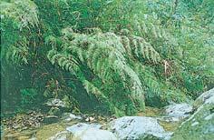 | 释义 | 金毛狗(Cibotium barometz) 亦称“金毛狗脊”。 蕨类植物,蚌壳蕨科。多年生草本。根状茎粗大,密生金黄色长茸毛,形如狗头,故名。叶柄粗壮,叶片革质,三回羽裂,裂片镰状披针形,有浅锯齿。 孢子囊群生于小脉顶端;囊群盖两瓣,形如蚌壳。生于山麓沟边和林下阴处酸性土上。分布于中国长江流域以南各地。根状茎含淀粉,可供食用或酿酒;亦入药,性温、味苦甘,功能补肝肾、强筋骨、除风湿,主治腰膝酸软、风寒湿痹等症。