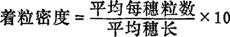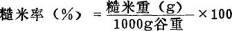着粒密度分为密、中、稀三级。每10cm穗长在60粒以上为密,54-60粒为中;54粒以下为稀。 (9)穗重 从每穗穗颈处剪下,晒干称重,除以穗数。即得每穗平均重(克)。考查时以主穗为准。品种的穗重分为大、中、小三级。3.5g以上为大;2.3-3.5g之间为中;2.3g以下为小。 (10)千粒重 测定国家规定水分的1000粒种子的重量。按千粒重可分为特大粒、大粒、中粒、小粒、特小粒五级。千粒重在30g以上为特大粒;27-29g之间为大粒;24-26g之间为中粒;21-23g之间为小粒;20g以下为特小粒。 4.谷粒 (1)谷粒形状 分卵圆形(内外稃凸)、短圆形(内外稃甚凸)、椭圆形(内外稃微凸)、直背形(内稃微凸,外稃凸)、新月形(二边平行或者内稃微凸或直,外稃微凸或直)。 (2)芒的有无和长短 主穗中有芒粒数在10%以下的为无芒;在10%以上的为有芒;芒的长短分长、中、短、顶四级:芒长在10mm以下为顶芒;芒长在11-30mm为短芒;30-60mm为中芒;芒长在60mm以上为长芒。 (3)柱头色 在开花时记载柱头的实际颜色,分无色、红色、紫色三级。 (4)稃色、稃尖色、护颖色 从开花至成熟有变化,以成熟期颜色为主,同时就其发育过程加以区别。 1)稃色 分秆黄色、褐斑色、茶褐色、红色、深红色、灰白色、紫色、紫黑色条斑纹等。 2)稃尖色 分秆黄色、延展褐色、红色、淡黑褐色、黑褐色等。 3)护颖色 分秆黄色、淡黄栗色、淡褐色、紫褐色、部分红色、部分黄褐色等。 (5)糙米率 取谷粒样品1000克,脱壳,称其糙米(包括碎米)重量,计算: