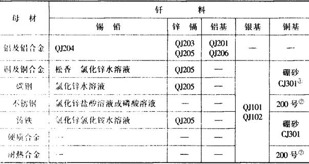 ①CJ301为铜气焊钎剂,②200号为硼砂+硼酸类钎剂。