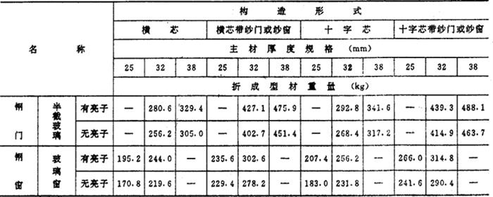 | 字词 | 钢门窗面积与型钢重量换算表 |