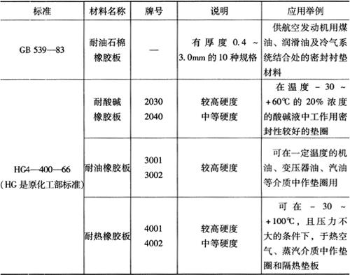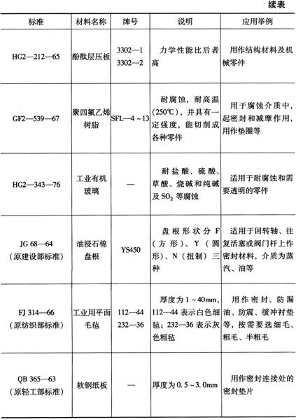 表2-52 非金属材料板的性质及应用范围